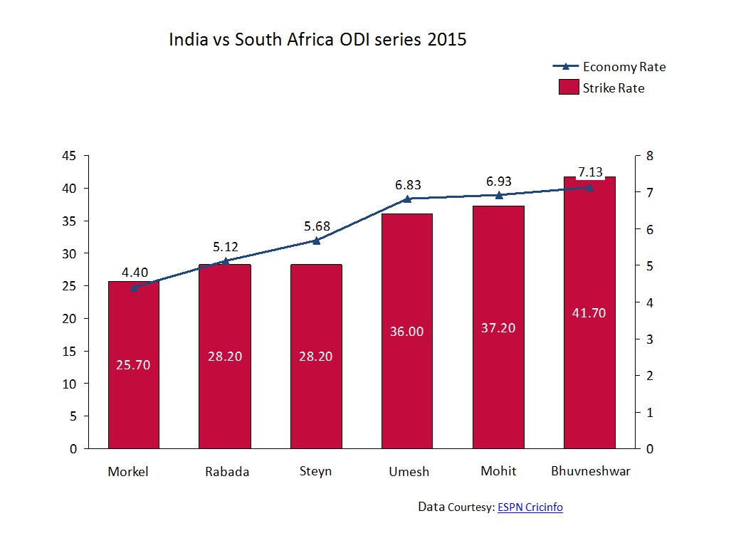 Indian pacers, on the other hand, went back to the old story of conceding truck load of runs and lack of wickets. Bhuvneshwar, Umesh, Mohit and Dhawal Kulkarni performed fast bowling duties for India in the last ten ODIs after the World Cup and the numbers do not shower any of them in glory.